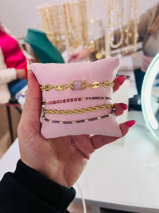 Pulsera morada miyuki con perlas