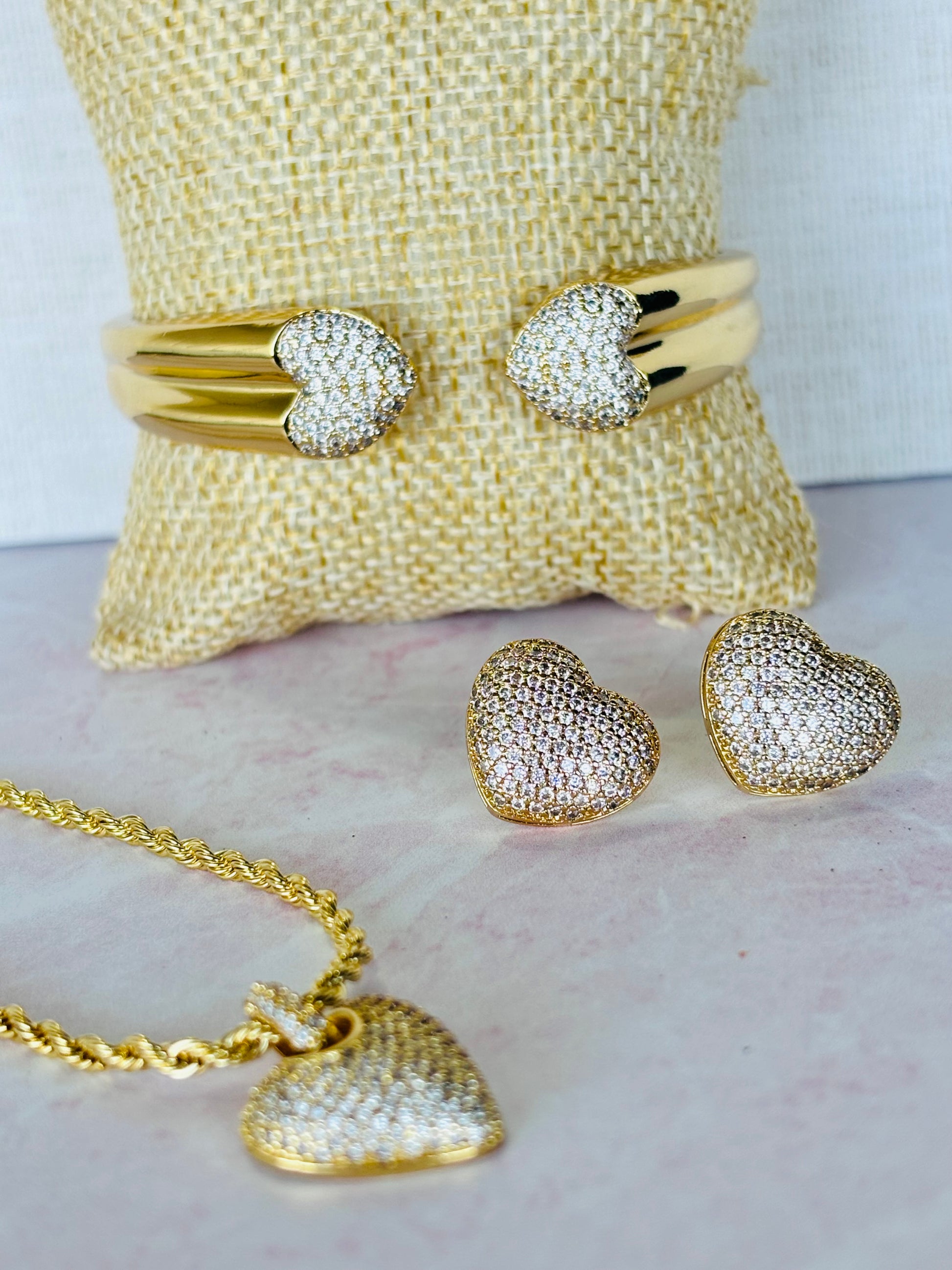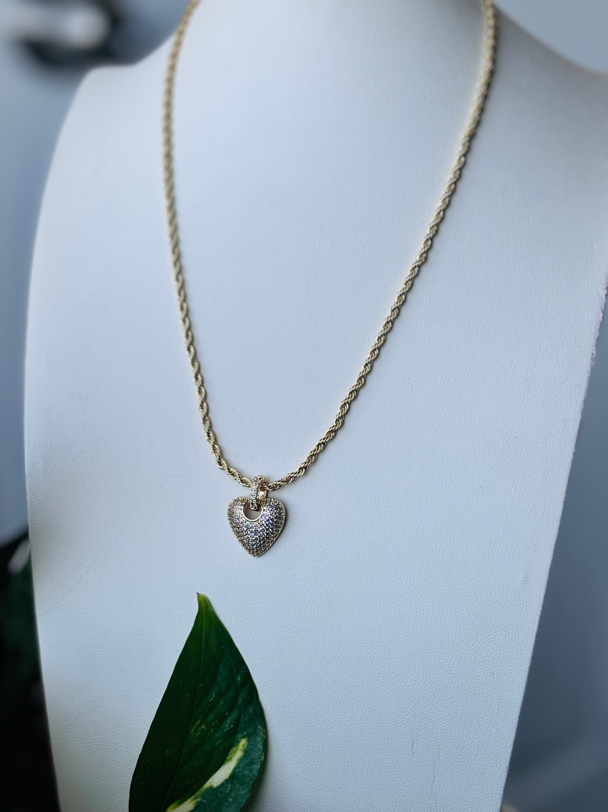 Hermoso corazón con cadena torsal. Encuentra su aro y aretes !